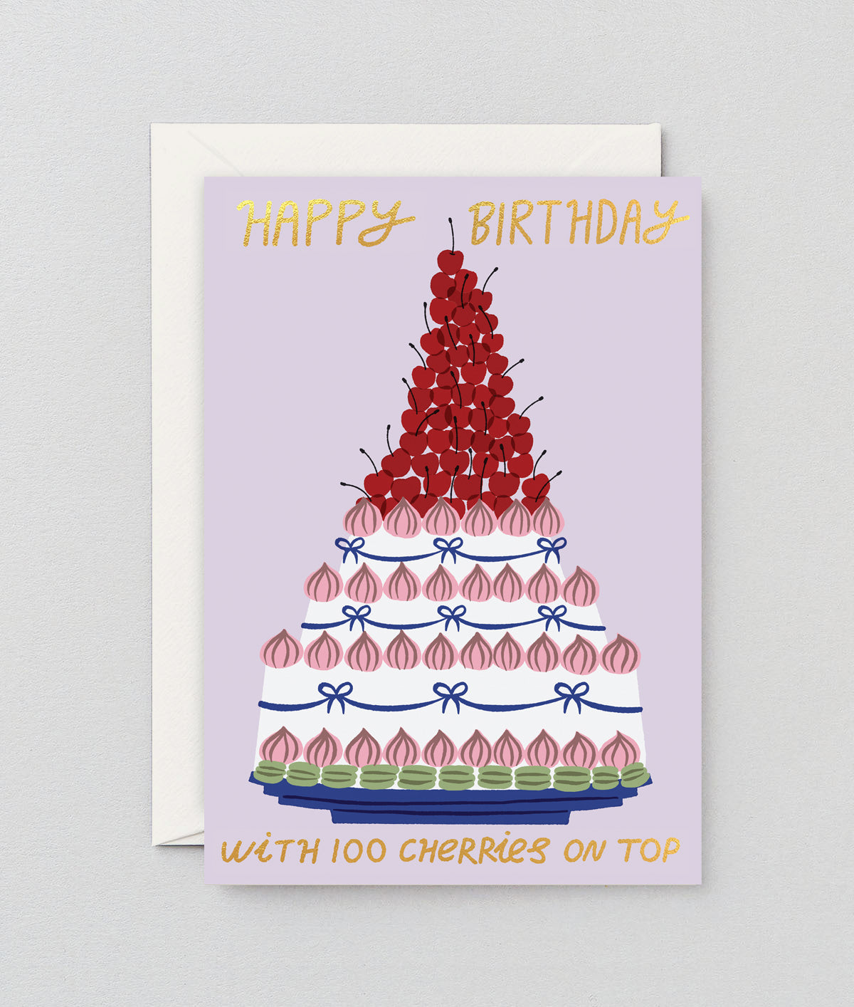 Birthday wishes with not one but 100 cherries on top. A fun illustrated birthday card by Rozalina Burkova for Wrap.