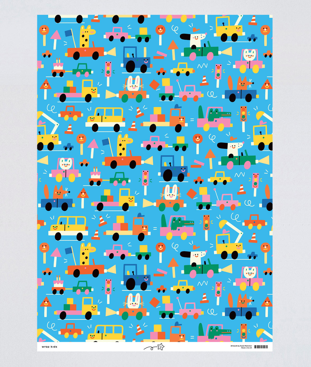 A fun illustrated wrapping paper designed for children perfect for birthdays