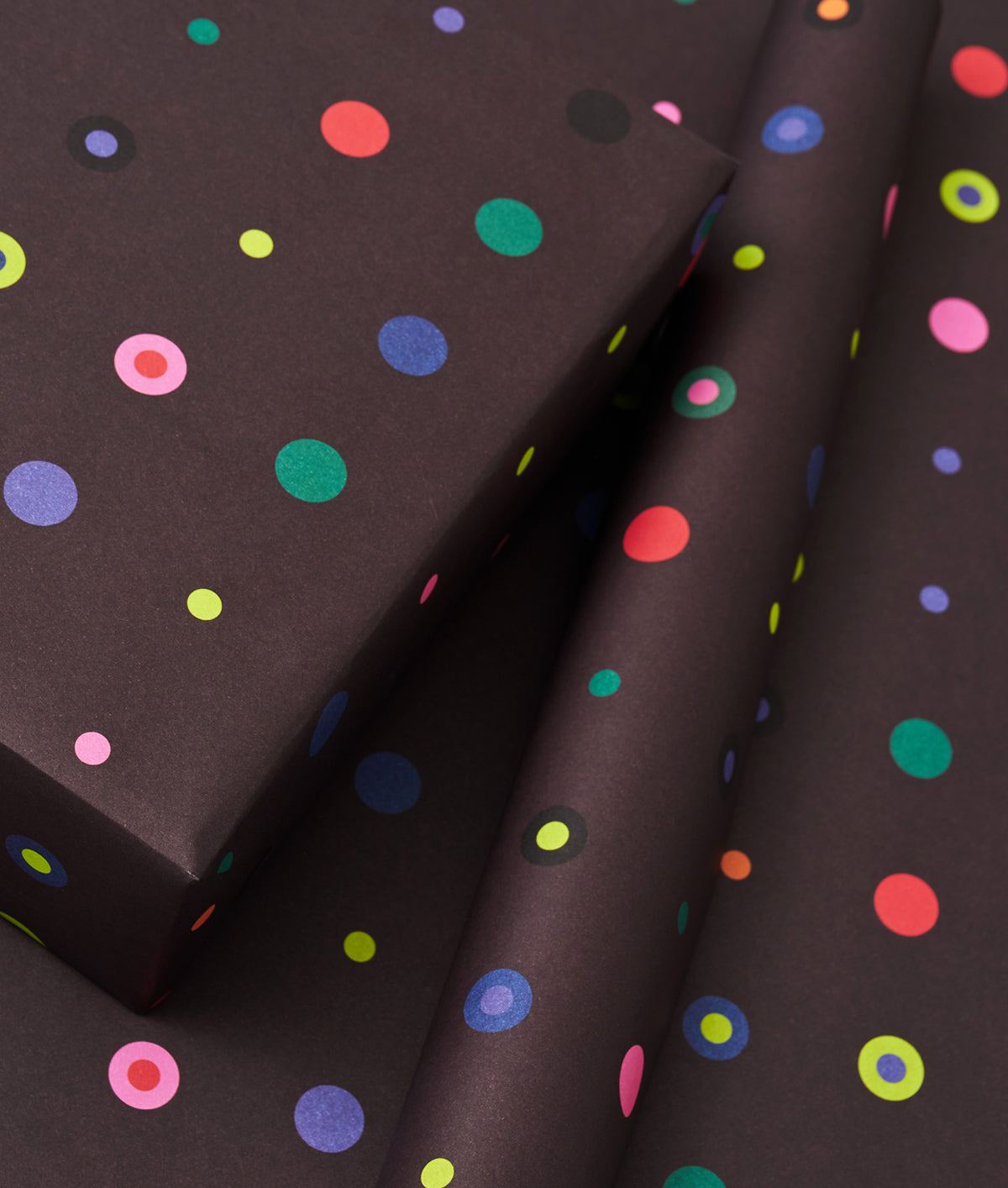 A graphic illustrated wrapping paper by artist and designer Kangan Arora for Wrap