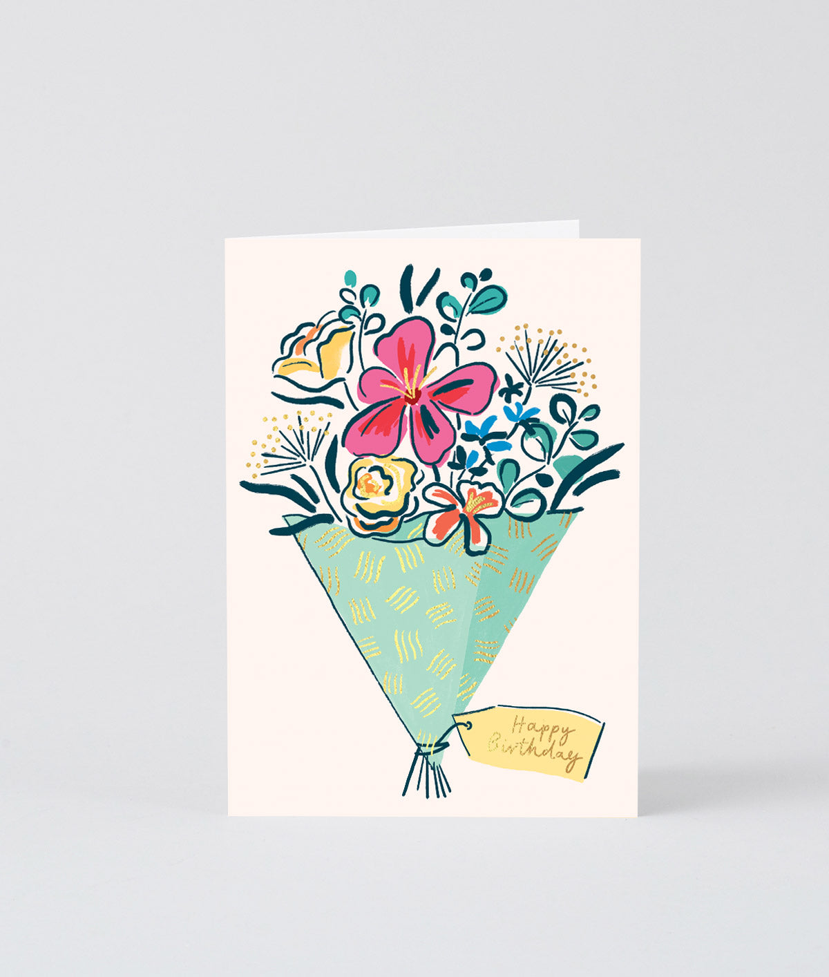 A floral flourish to celebrate their special day. This greetings card is designed in vibrant colours and finished with gold foil detailing for the final touch.