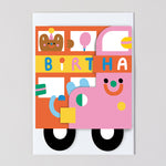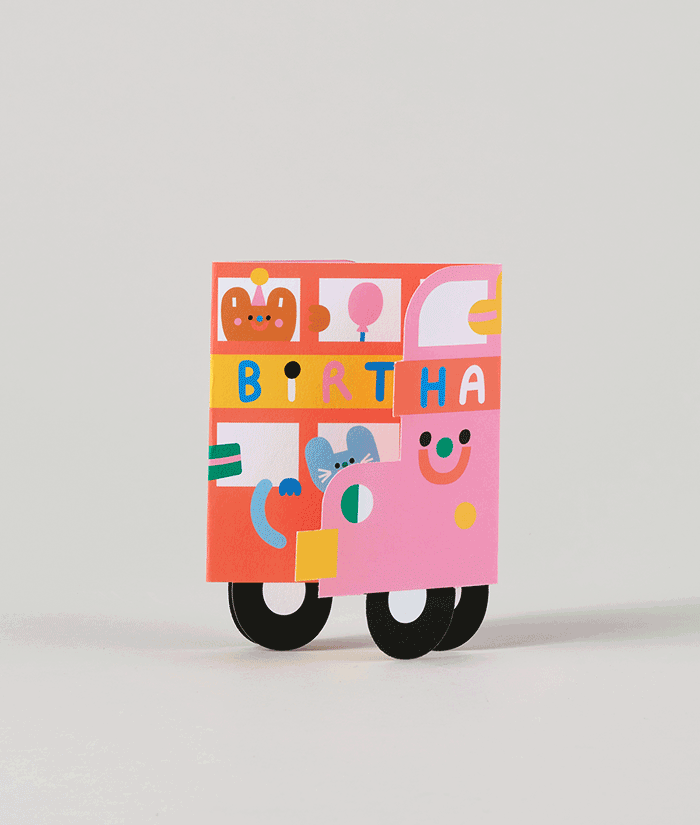 Jump on the party bus with this fun kids fold out birthday card by Susie Hammer.