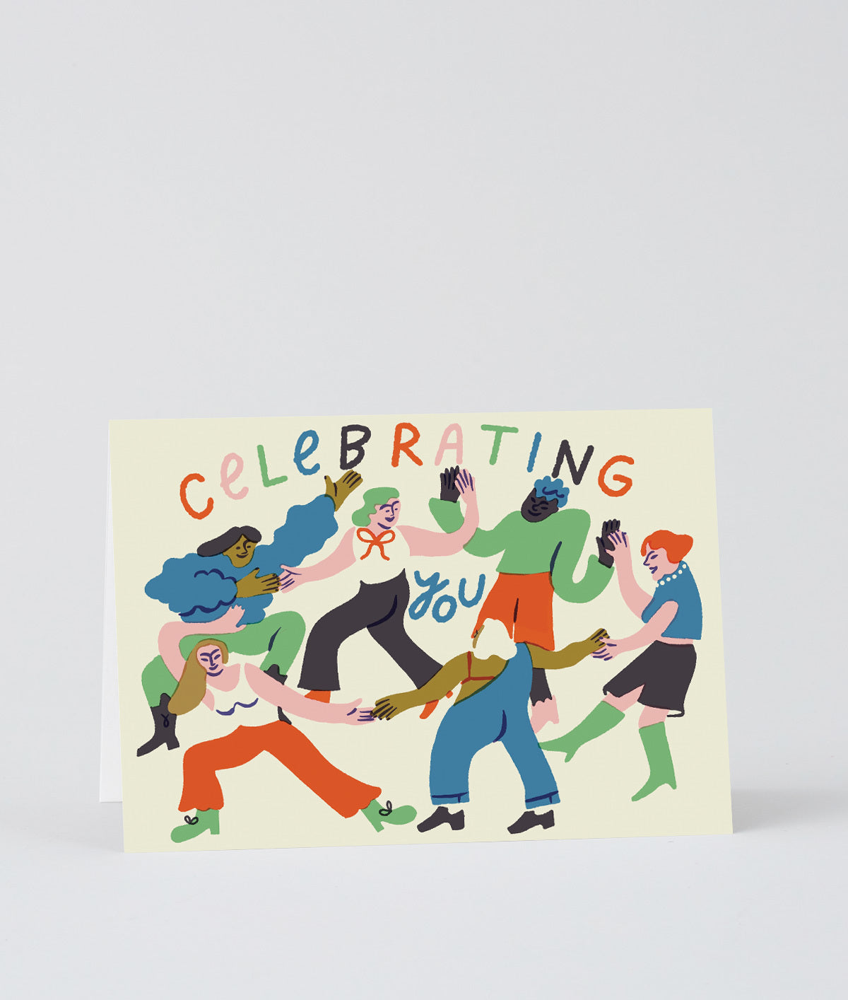 A celebration expressed through interpretive dance, this lively greetings card is full of bright colour and warm feelings.
