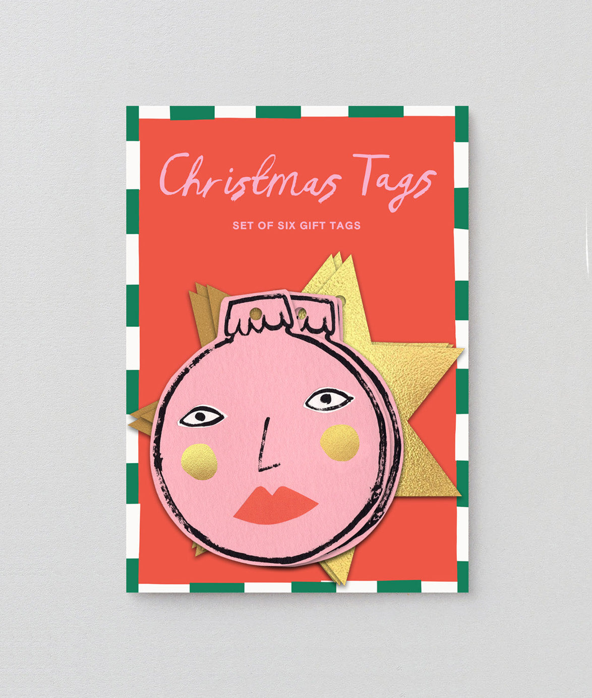 The perfect finishing touch for Christmas gifts – a set of six charming gold-foiled gift tags designed by Rosy Nicholas in her playful paper-cut style.