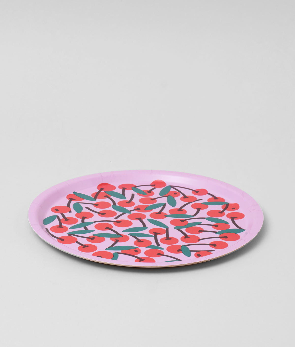 Cherries Pink Small Round Serving Tray