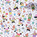 A fun illustrated wrapping paper designed for children, perfect for birthdays