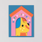 This cute little dog is popping out to say Happy Birthday. This fun fold out card is sure to please all ages.