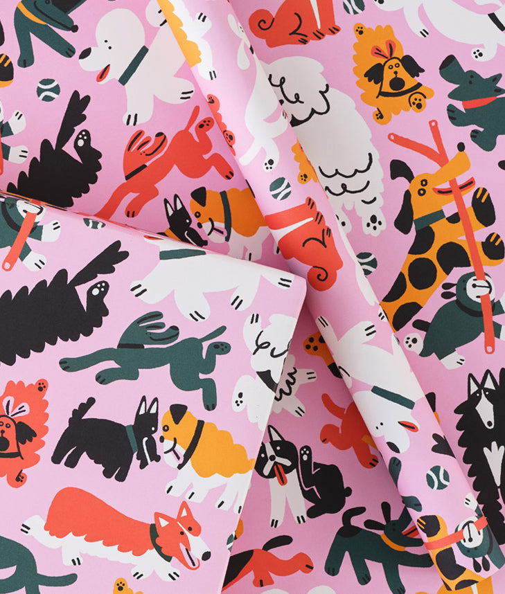 This parade of pups makes a colourful and joyful wrapping paper design. These charmingly fun illustrated doggies have a 'cute n cuddly' appeal.