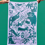 Dogs Day Out Lilac/Green Cotton Tea Towel