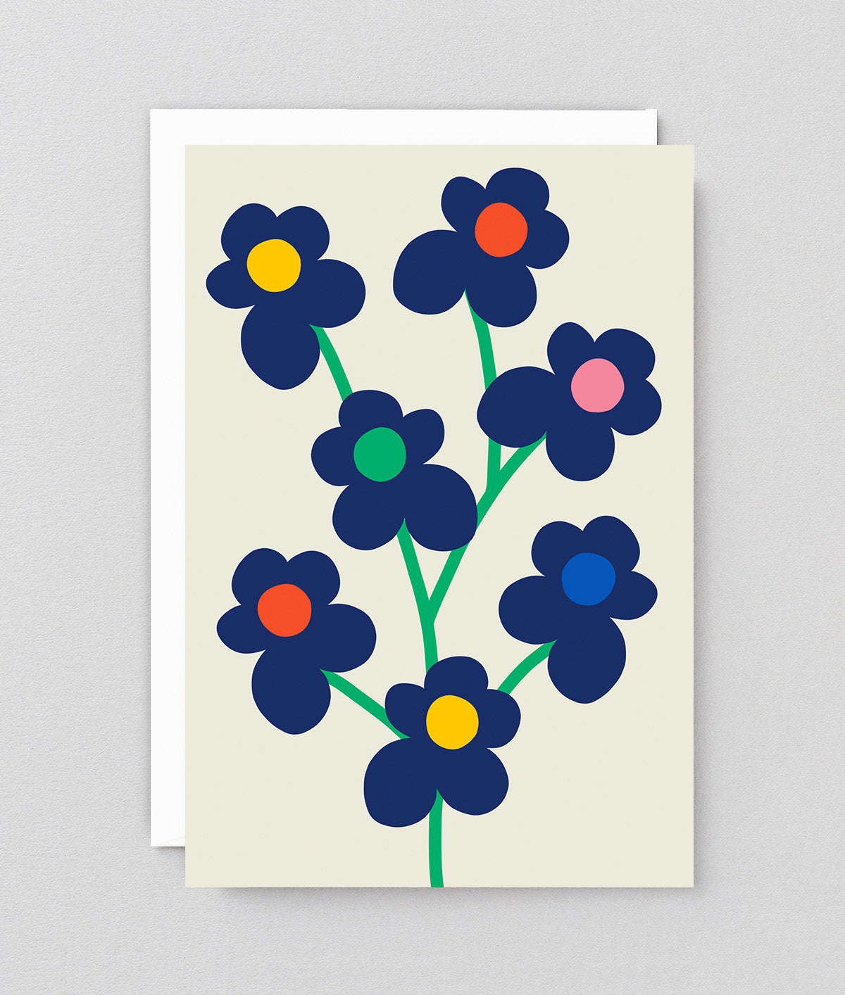 This art card designed by Micke Lindebergh features a bright bouquet, with bold blue petals. Evergreen and perfect for all occasions.