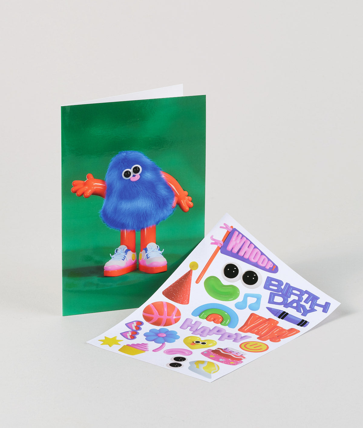 Customise this birthday card with 25 fun stickers from sunglasses and hats to cakes and birthday messages.
