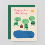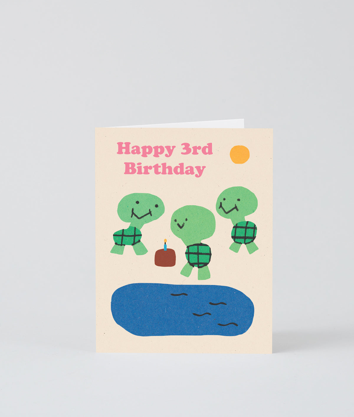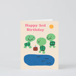 It's party time for these three turtle-y adorable friends. This irresistible kids' greetings card design is full of fun and colour.