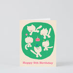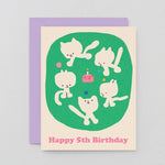 Cats and cake make the perfect fifth birthday party. Designed in a fun and colourful style, this circle of cute kitties will enchant any little feline fan.