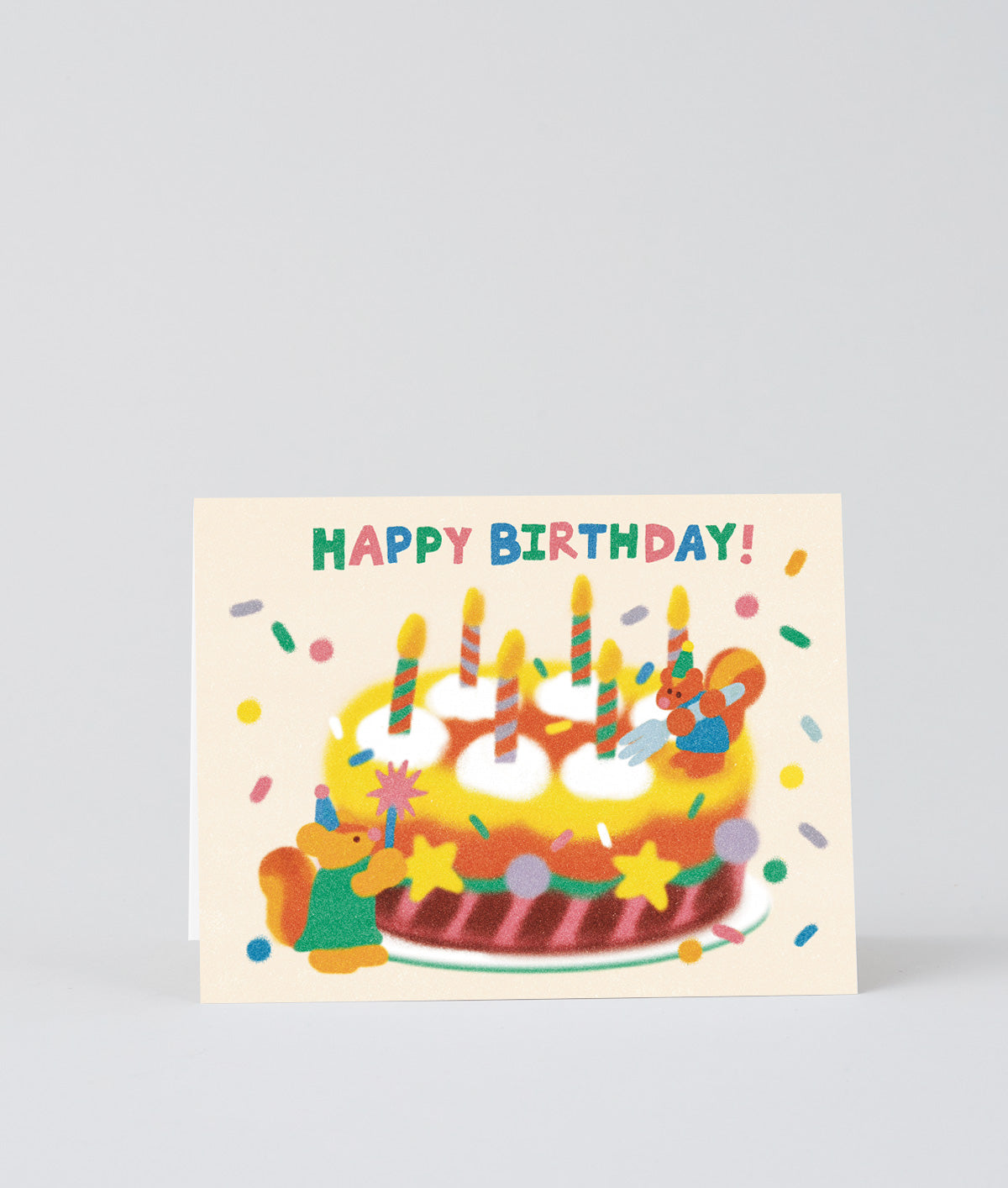 Gather round the cake and wish a loved one happy birthday with this cute birthday card from Zoey Kim
