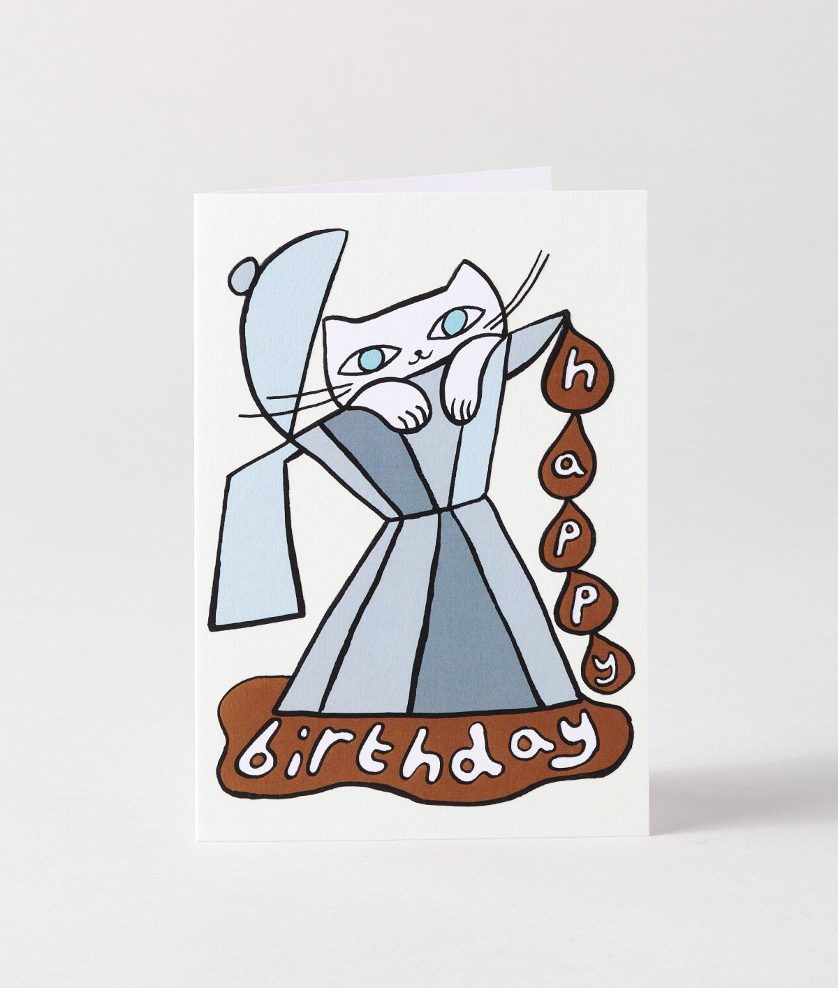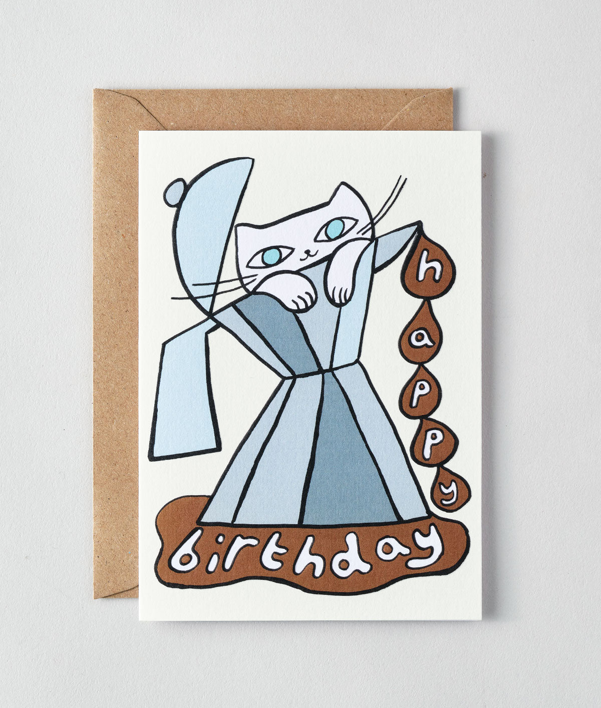 With just a few strokes of a loose inky brush, Bristol-based illustrator Molly Fairhurst brings to life a fantastical and kind world – full of oddities, music and fun, but one not so different from our own. In her first collection for Wrap you'll find cats popping out of coffee pots, geese passing their driving tests and a field of sweet tulips smiling into the sun.