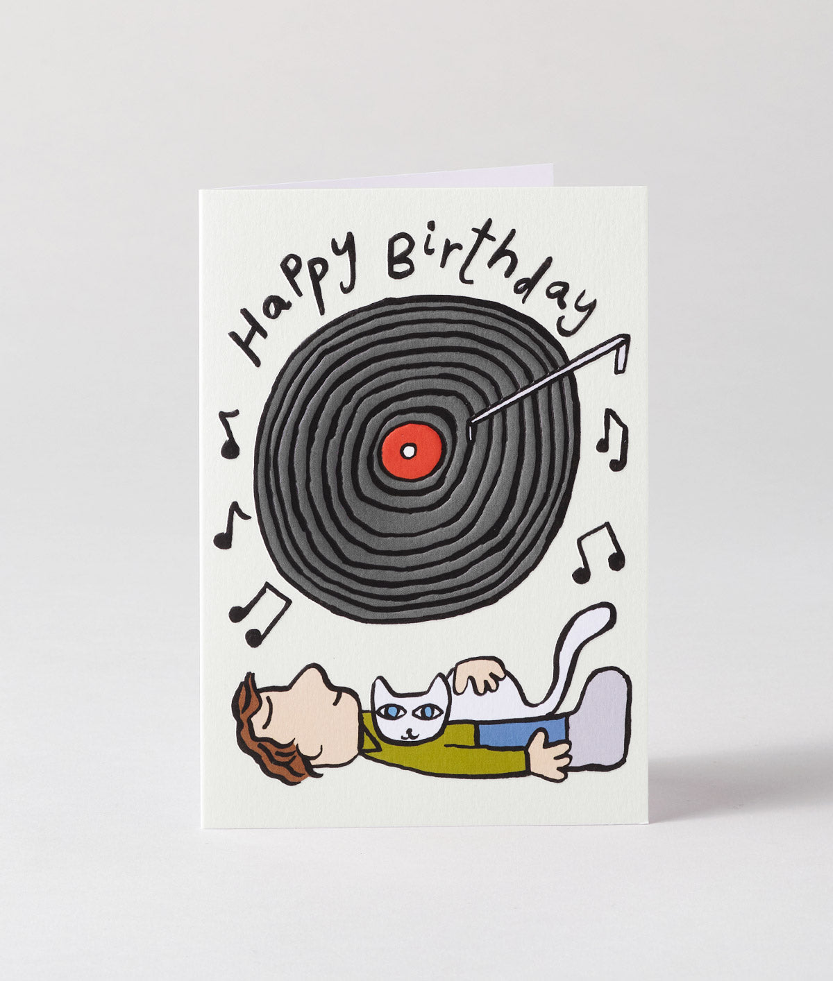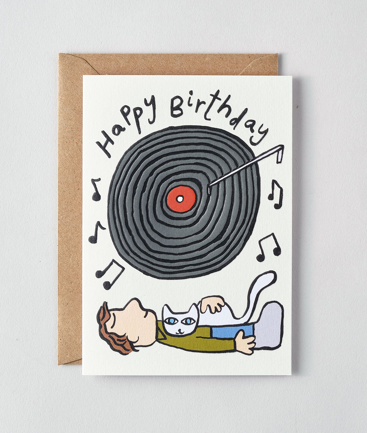 An illustrated birthday card for all the vinyl loving cool cats you know.