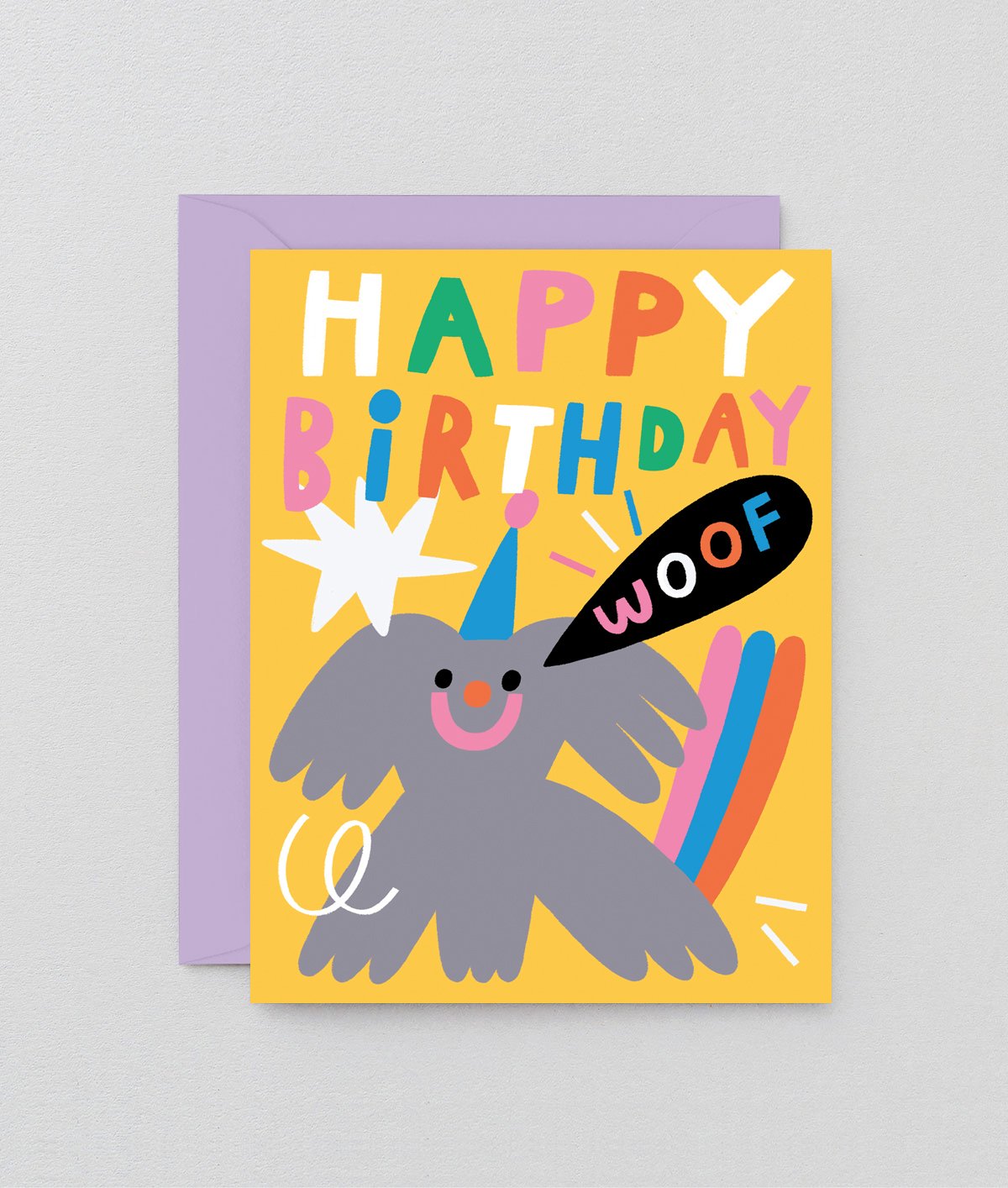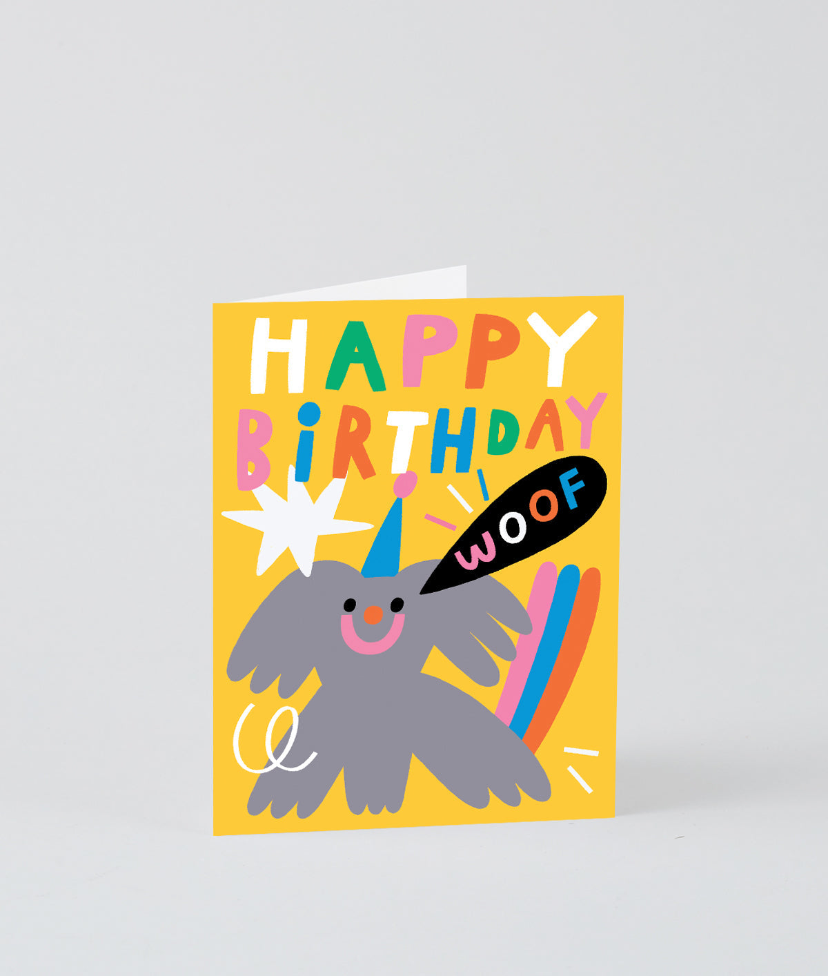 Designed in irresistibly bold colours and simple shapes, this playful little pooch is the happiest of birthday mascots.