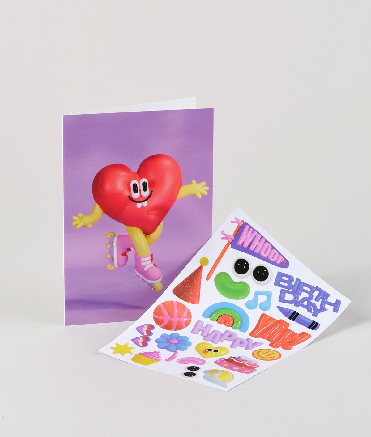 Customise this birthday card with 25 fun stickers from sunglasses and hats to cakes and birthday messages.