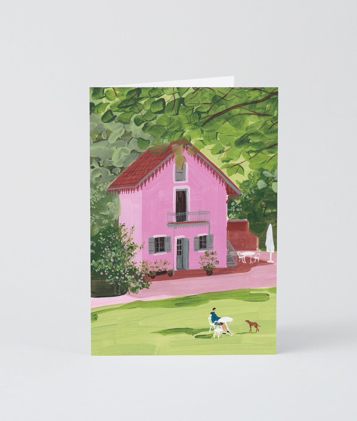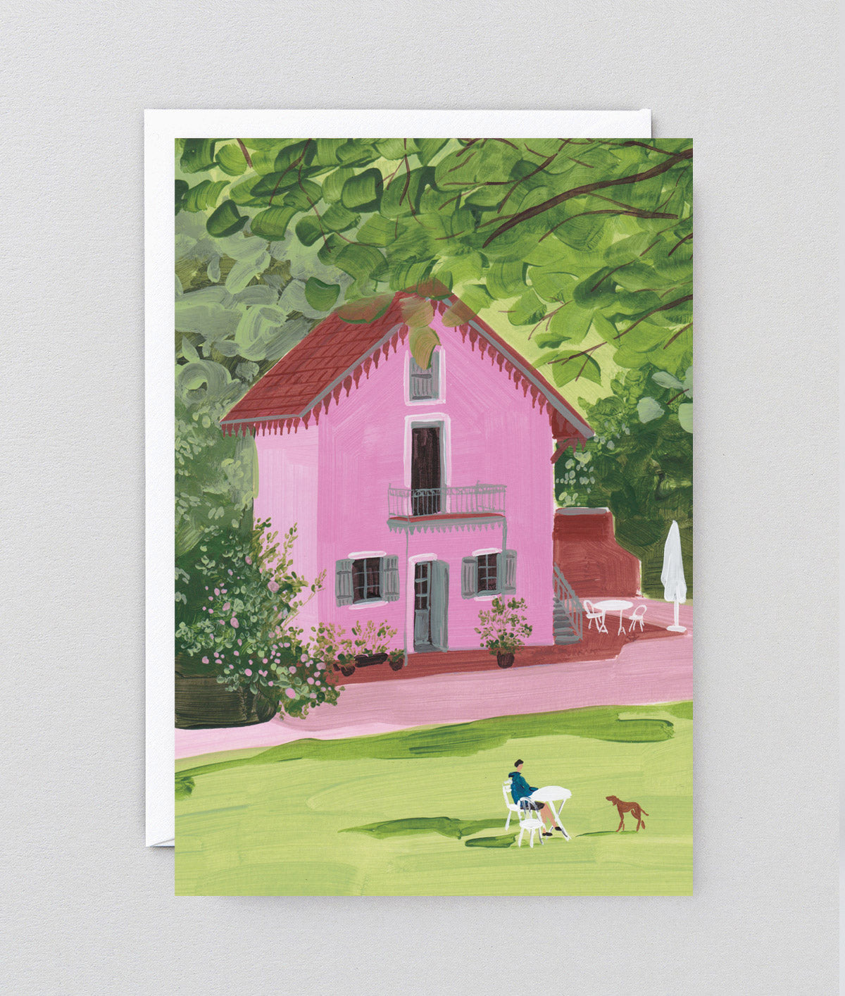 The picture of serenity, this rose-pink chalet surrounded by greenery has an irresistible appeal.