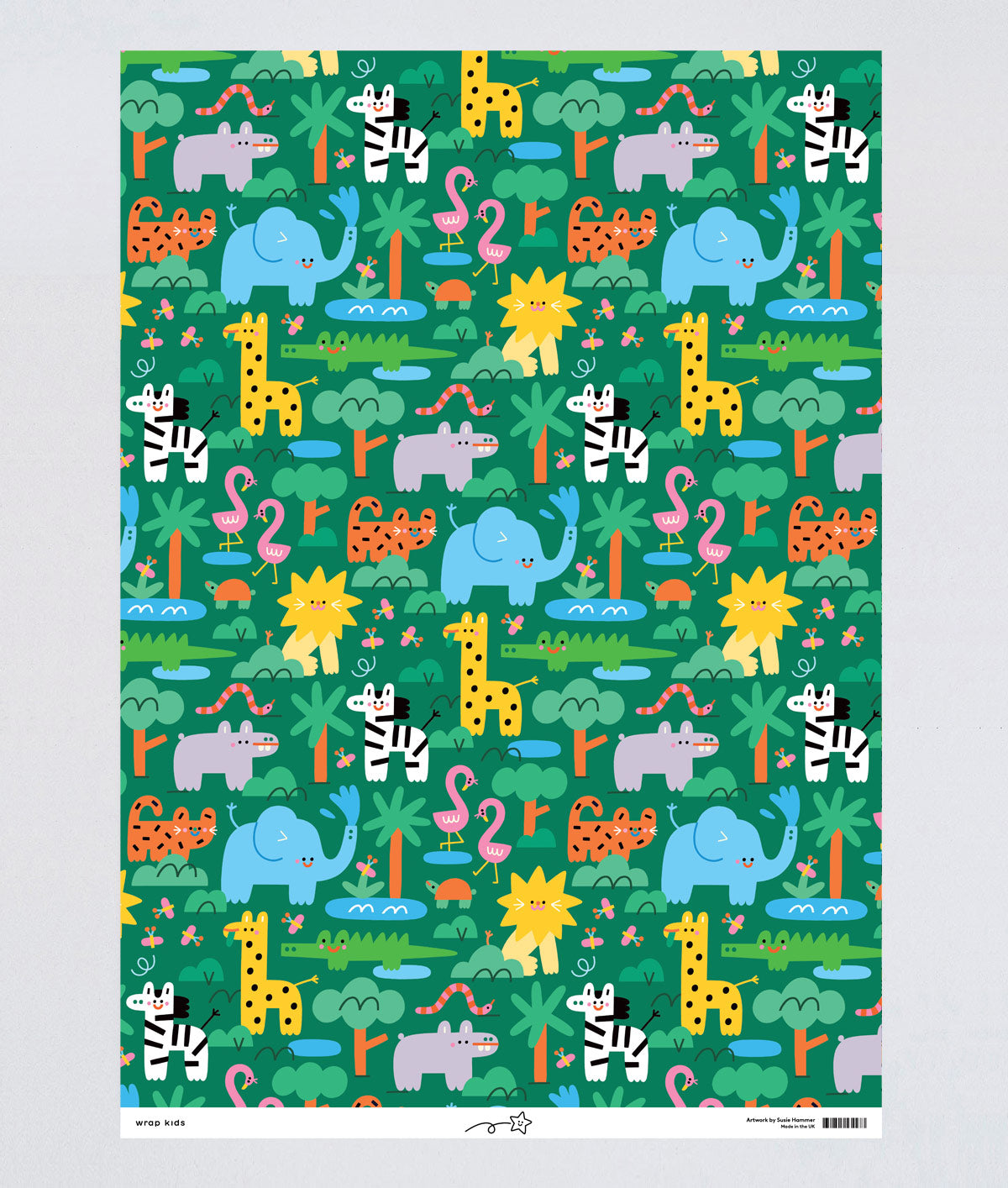 A fun illustrated wrapping paper designed for children perfect for birthdays