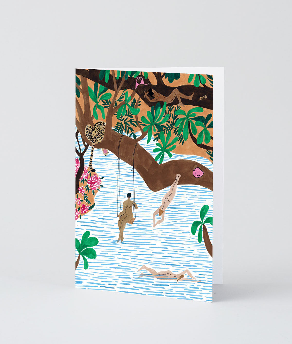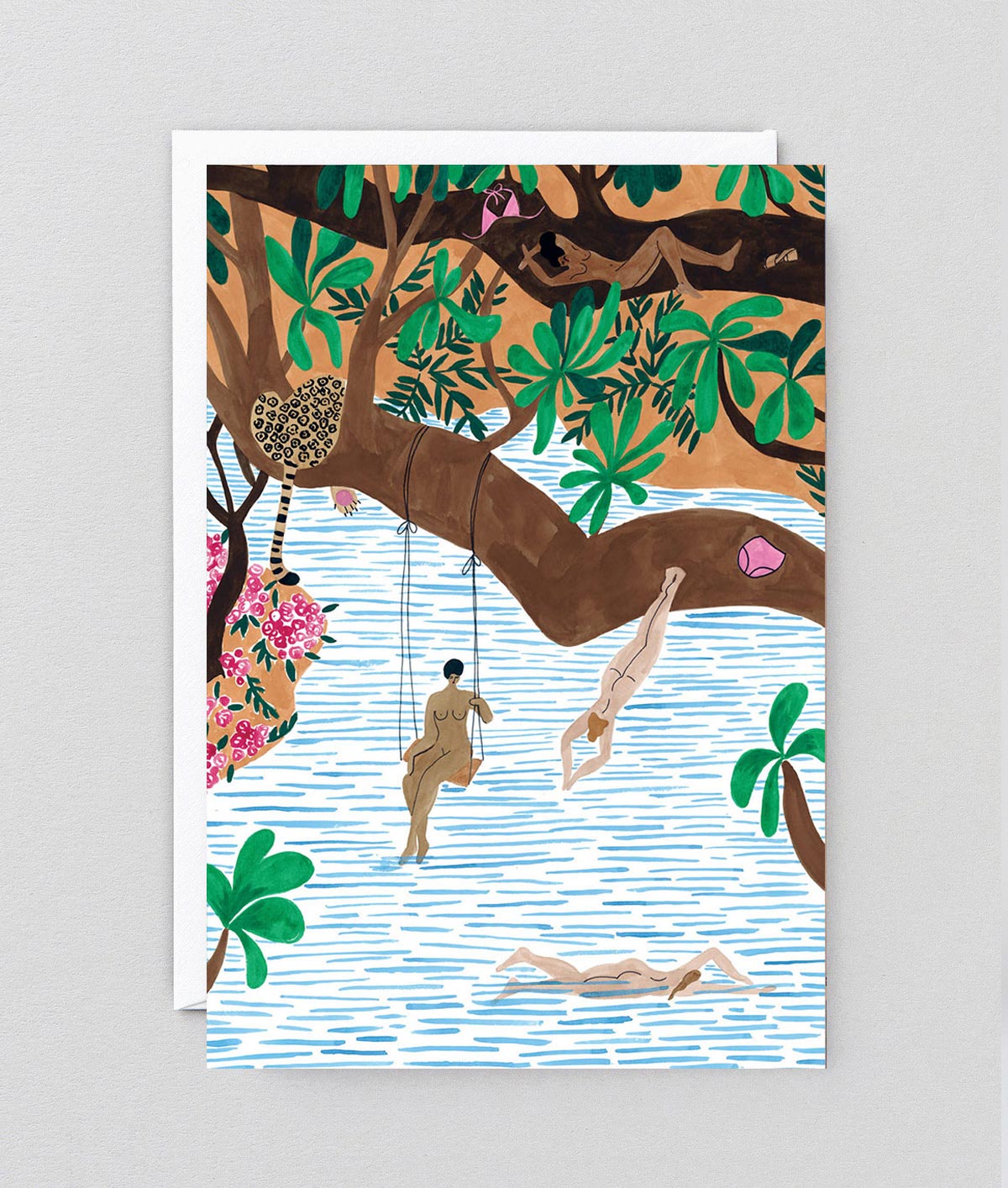A calming oasis, occupied by carefree bathers and curious wildlife by illustrator Isabelle Feliu.