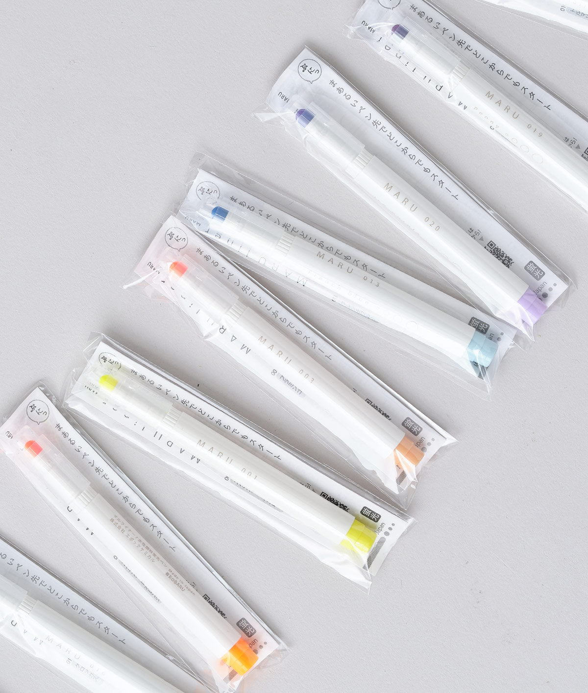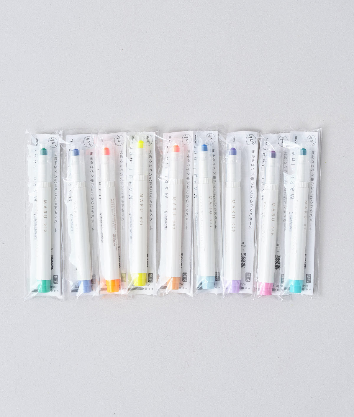 The Kobaru Maru (Dot) Liner is a compact round tipped marker perfect for creating different sizes of dots, or using as a highlighter. At just over 4" long you'll find this a nice compact size to pair with your planners or small notebooks
