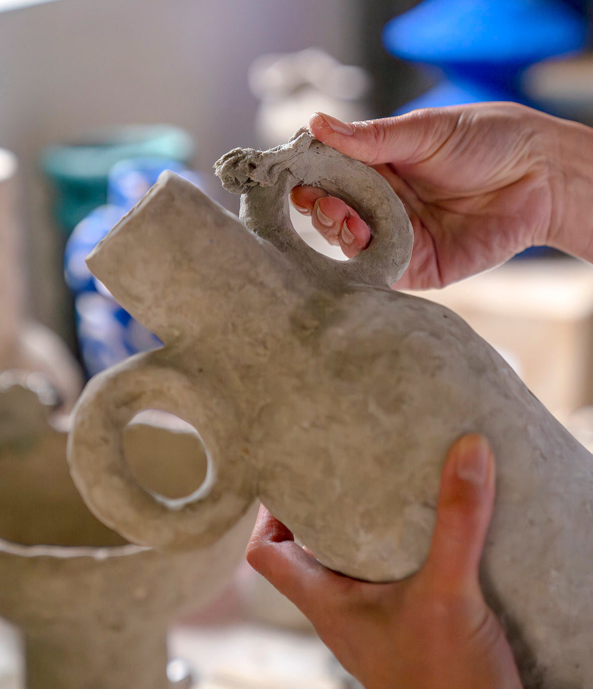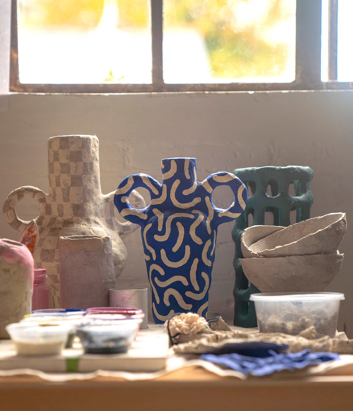 Taking into consideration everyday waste and circular design, DE LA JARDIN hand-sculpts each of their vessels using papier-mâché clay – made from recycled materials such as egg cartons and cardboard packaging.