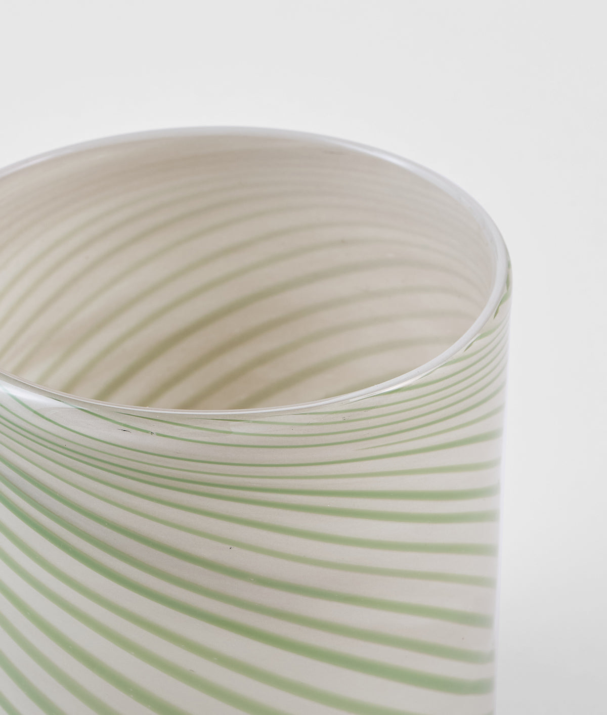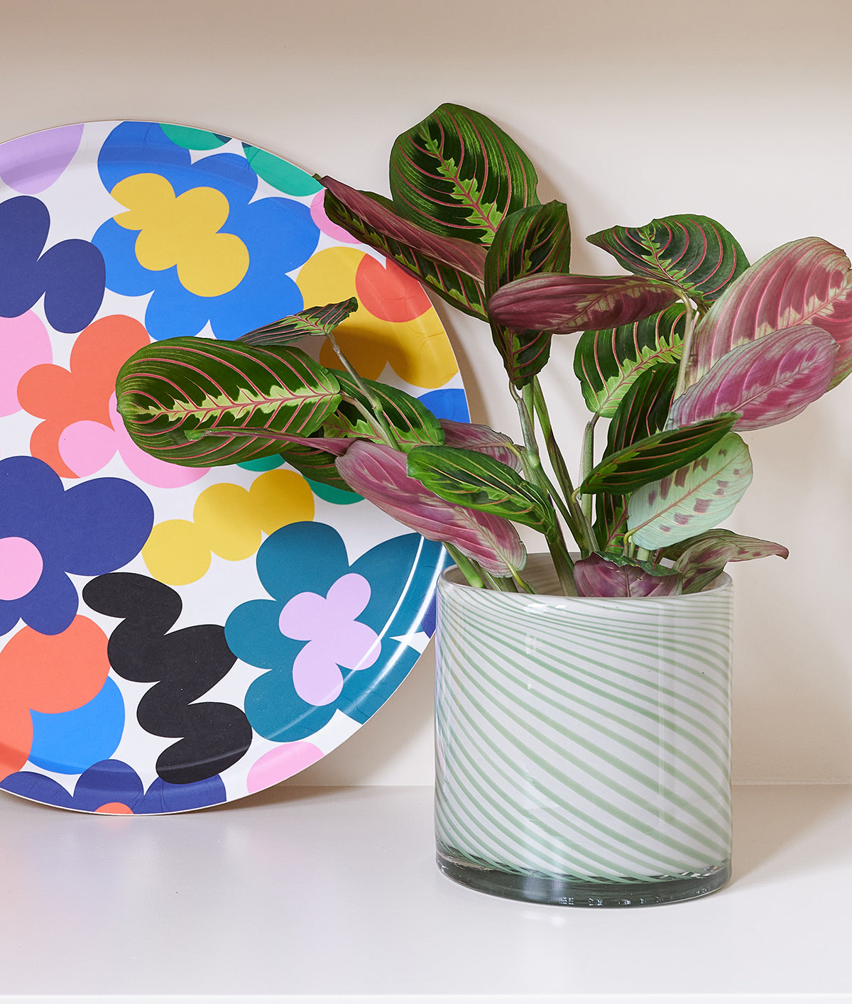 A collection of three hand-blown glass plant pots designed by the Wrap studio team – with each pot featuring a unique colourful spiral pattern. These are finished with a nice thick/weighty feel to them, rather than being too delicate.