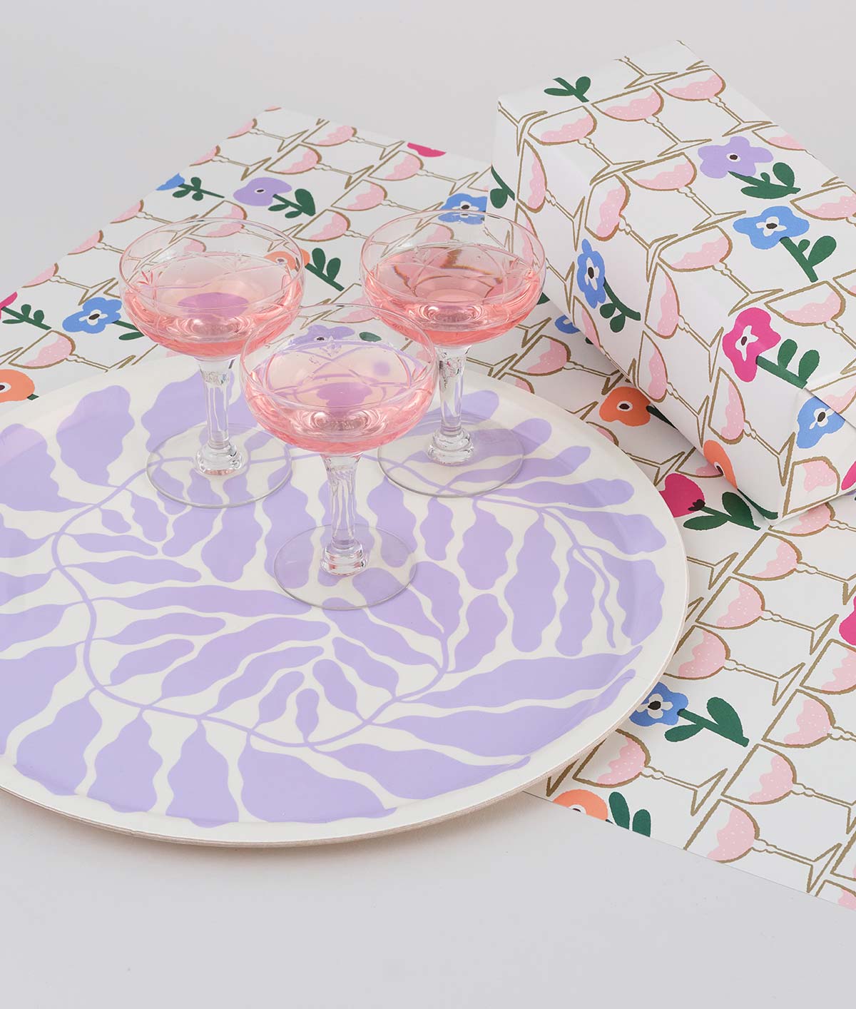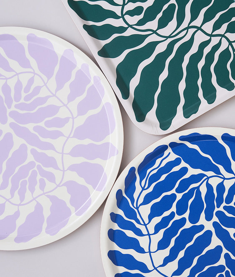 This eye-catching circular tray features Swedish artist Linnéa Andersson’s signature leafy motifs, spiralling out across its surface and finished in a striking lilac hue.
