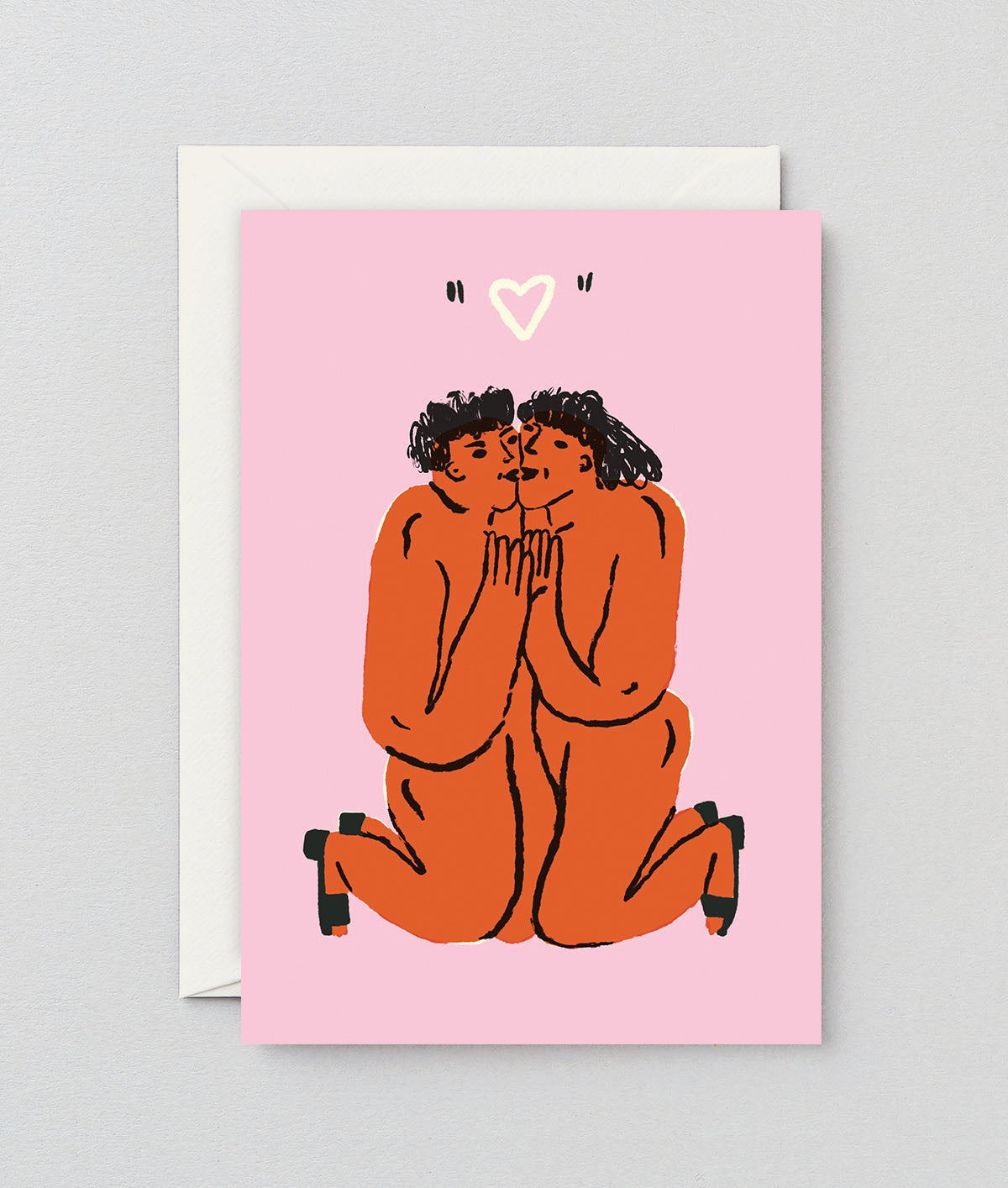 A passionate pair, this contemporary illustration greetings card is playfully illustrated by Rozalina Burkova in blushing pink and red.