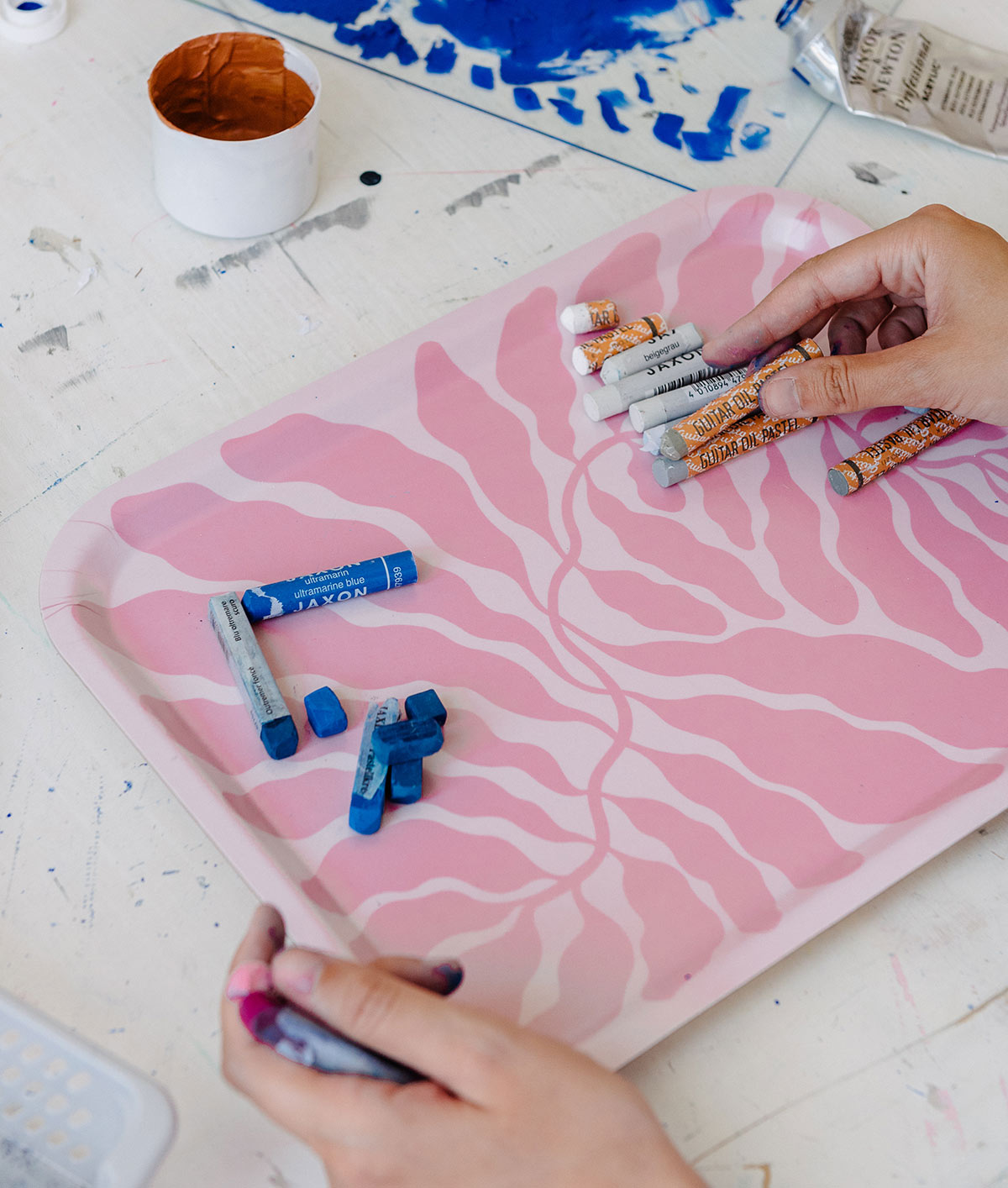 Featuring Swedish illustrator Linnéa Andersson’s signature leafy motifs, this rectangular tray combines blush pink leaves on a pale pink base.