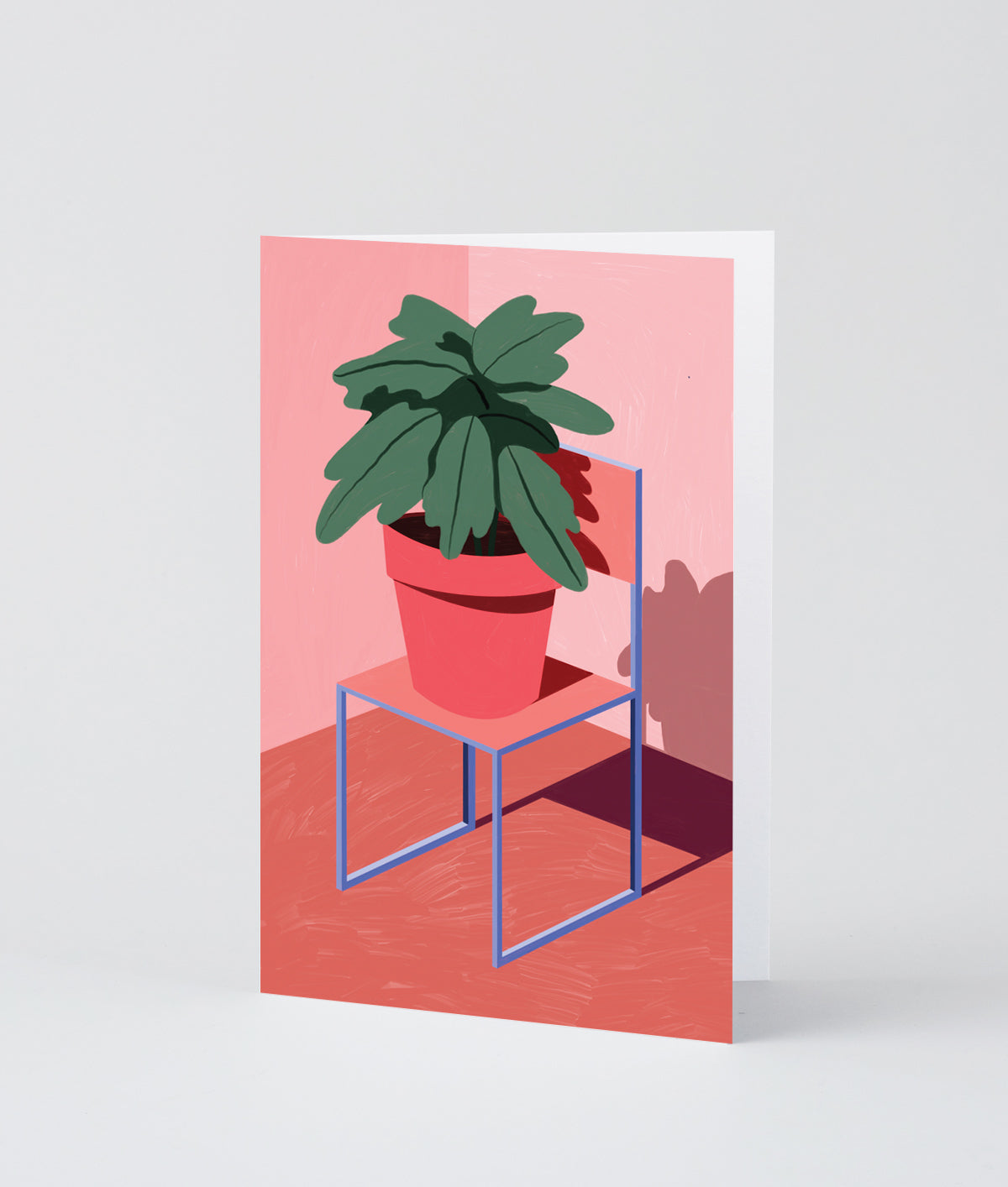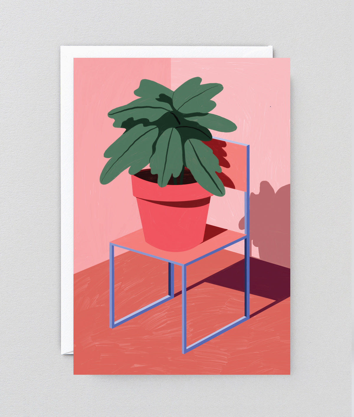 A perky plant on a precarious perch. This leafy delight is designed in bright earthy tones which play with shape and shadow