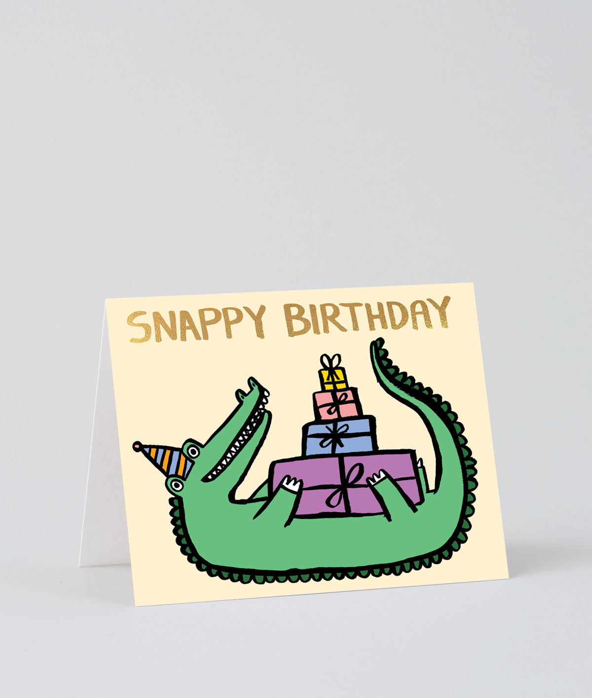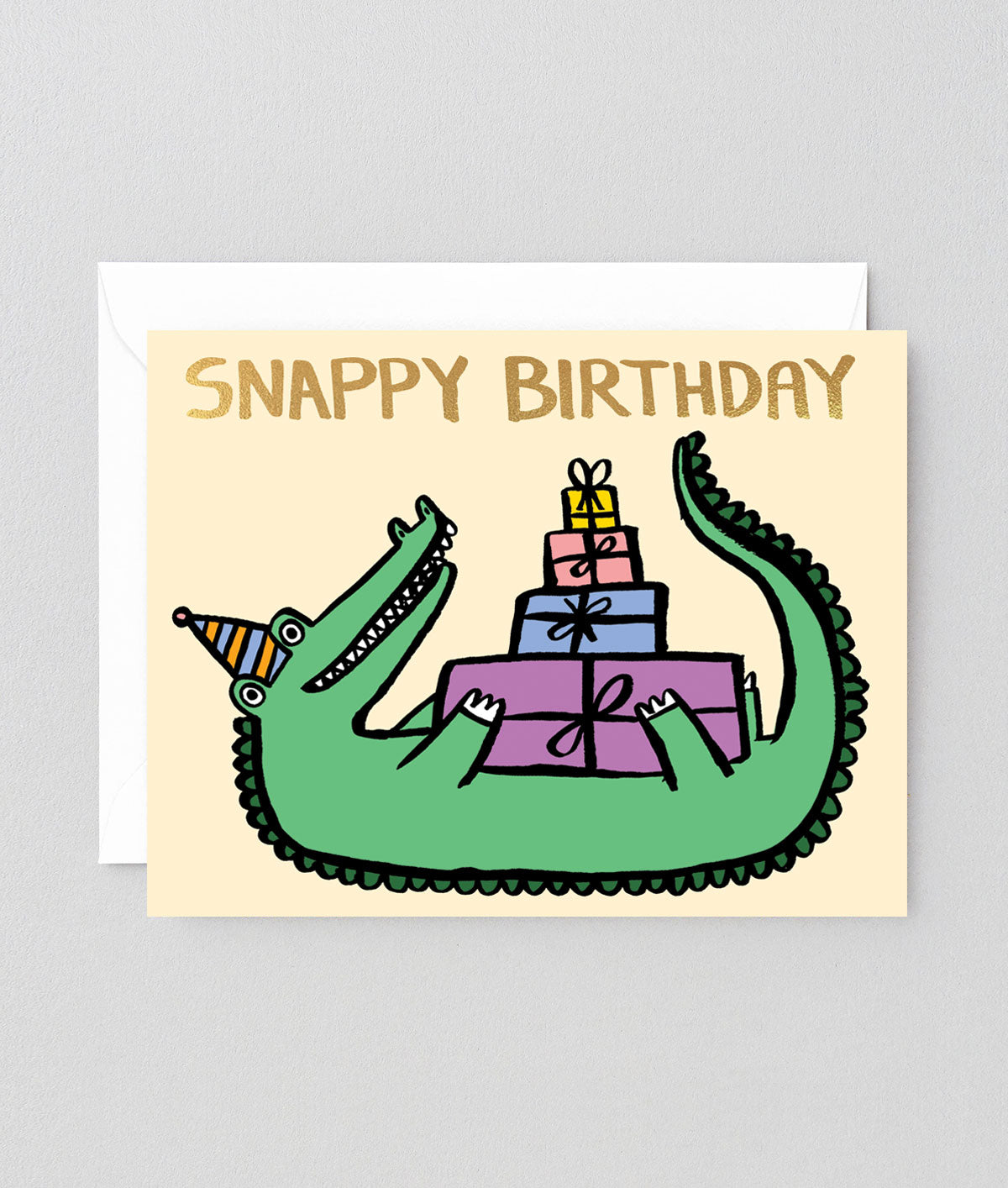 It's present time and this cute little croc is party ready! An irresistible kids' greetings card perfect for any little animal lover.