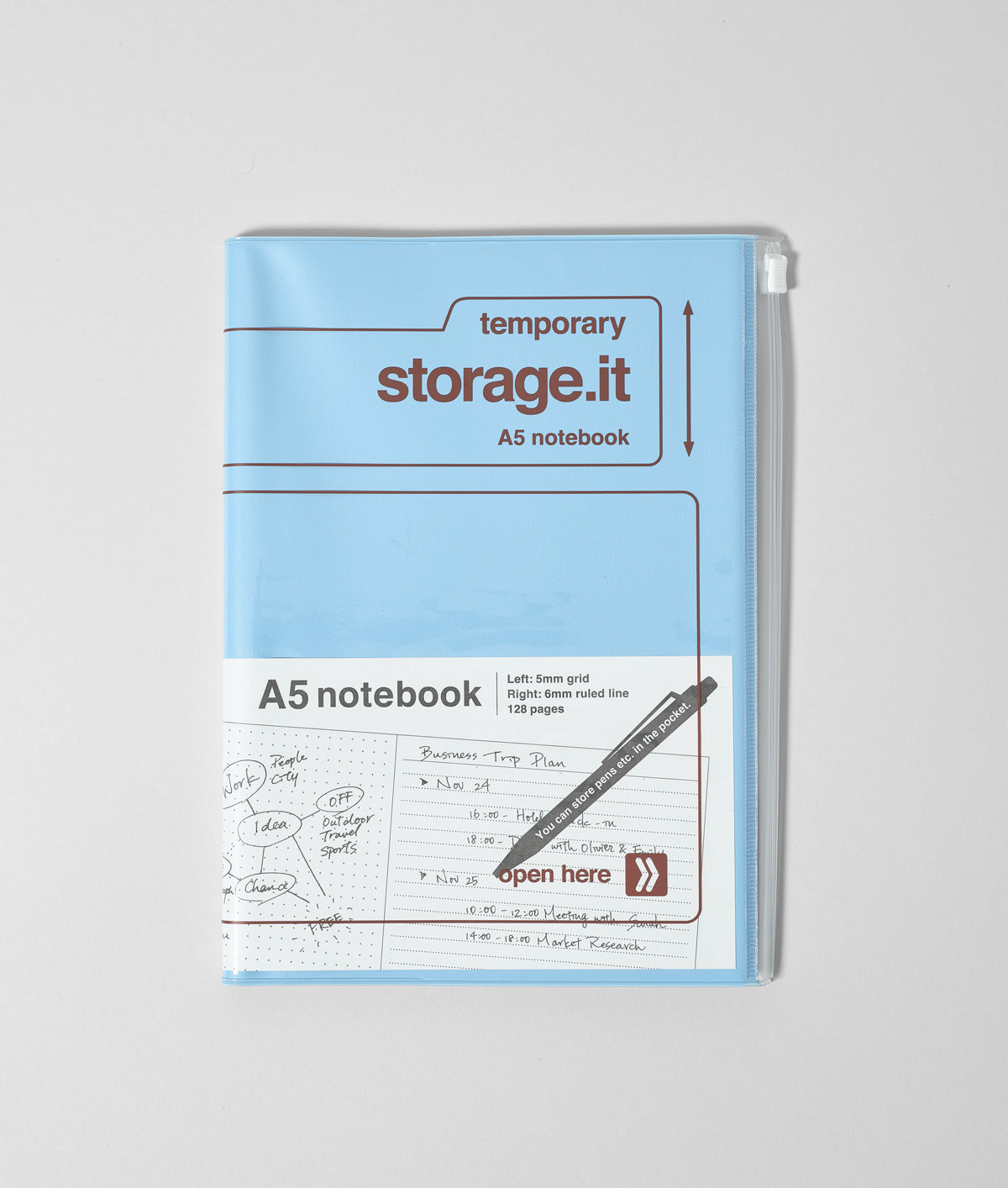 The Storage.it notebook provides form and functionality with a clever PVC cover with built in storage wallet for pens, phones, and important documents.