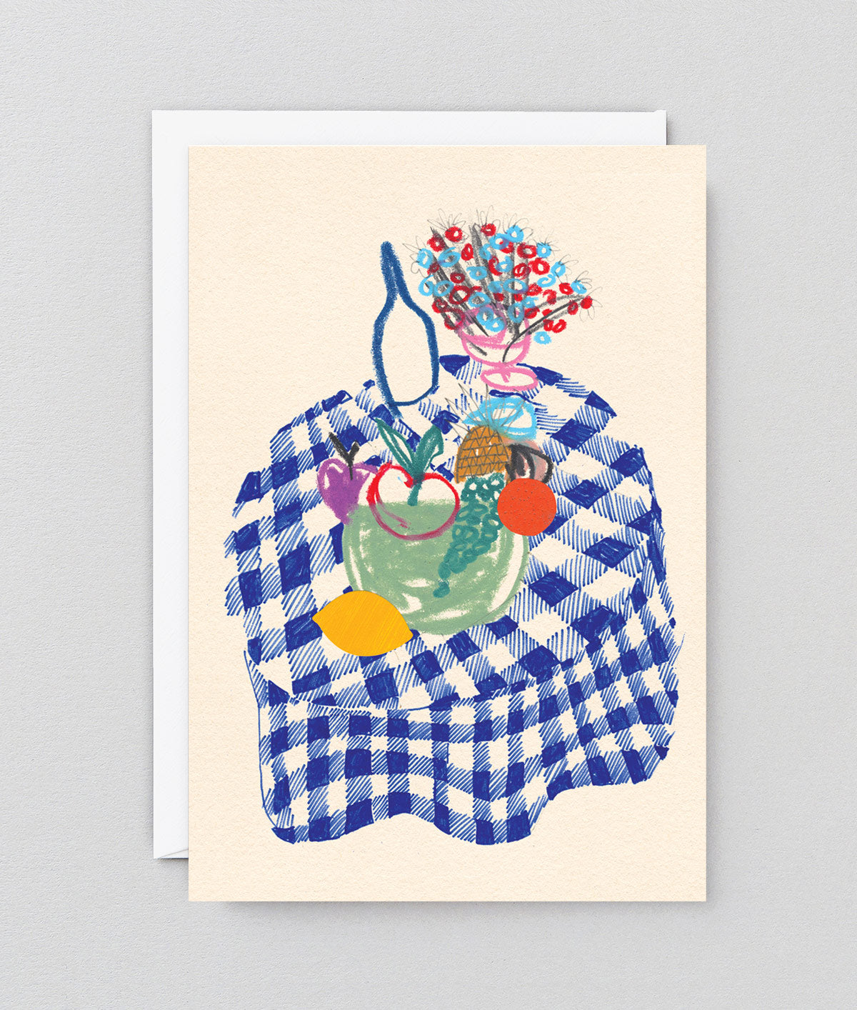 This charming art card by Amsterdam-based artist B.D. Graft features collaged fruits, energetic mark-making and bright blooms finished with chunky pastels.