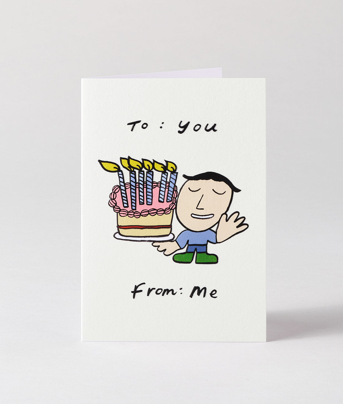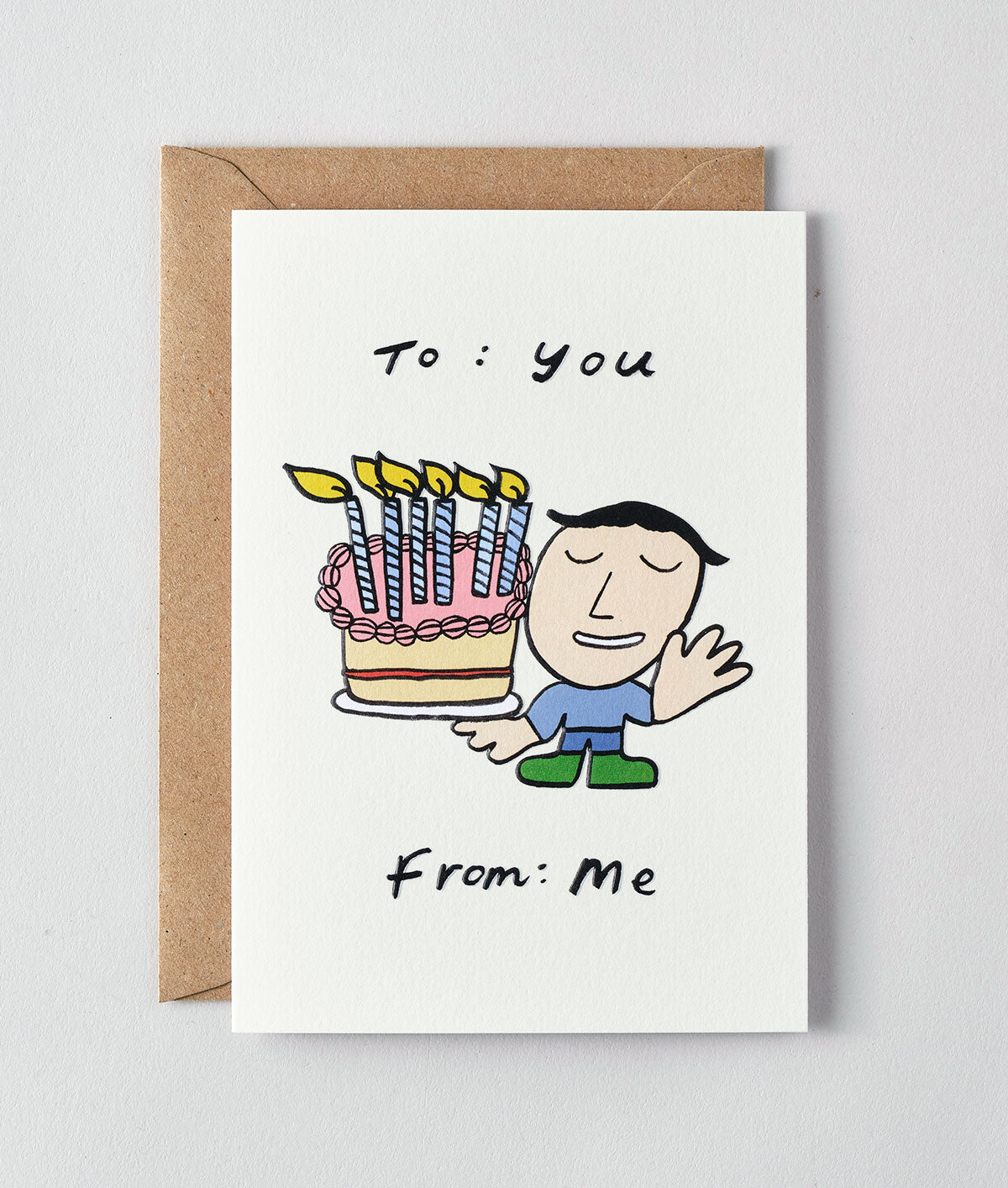 A cake to you from me. This thoughtful and fun birthday card is illustrated by Molly Fairhurst.