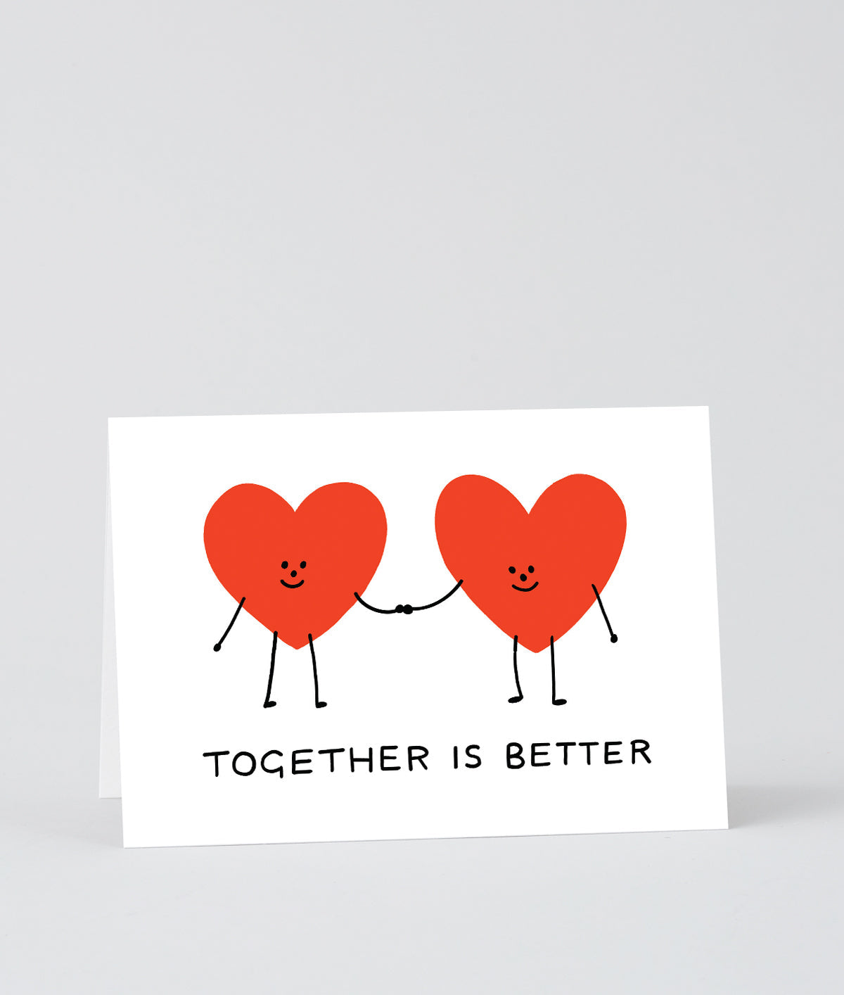 Together is better with these two cuties. Sweethearts printed in a bright red hue on this love and friendship card.