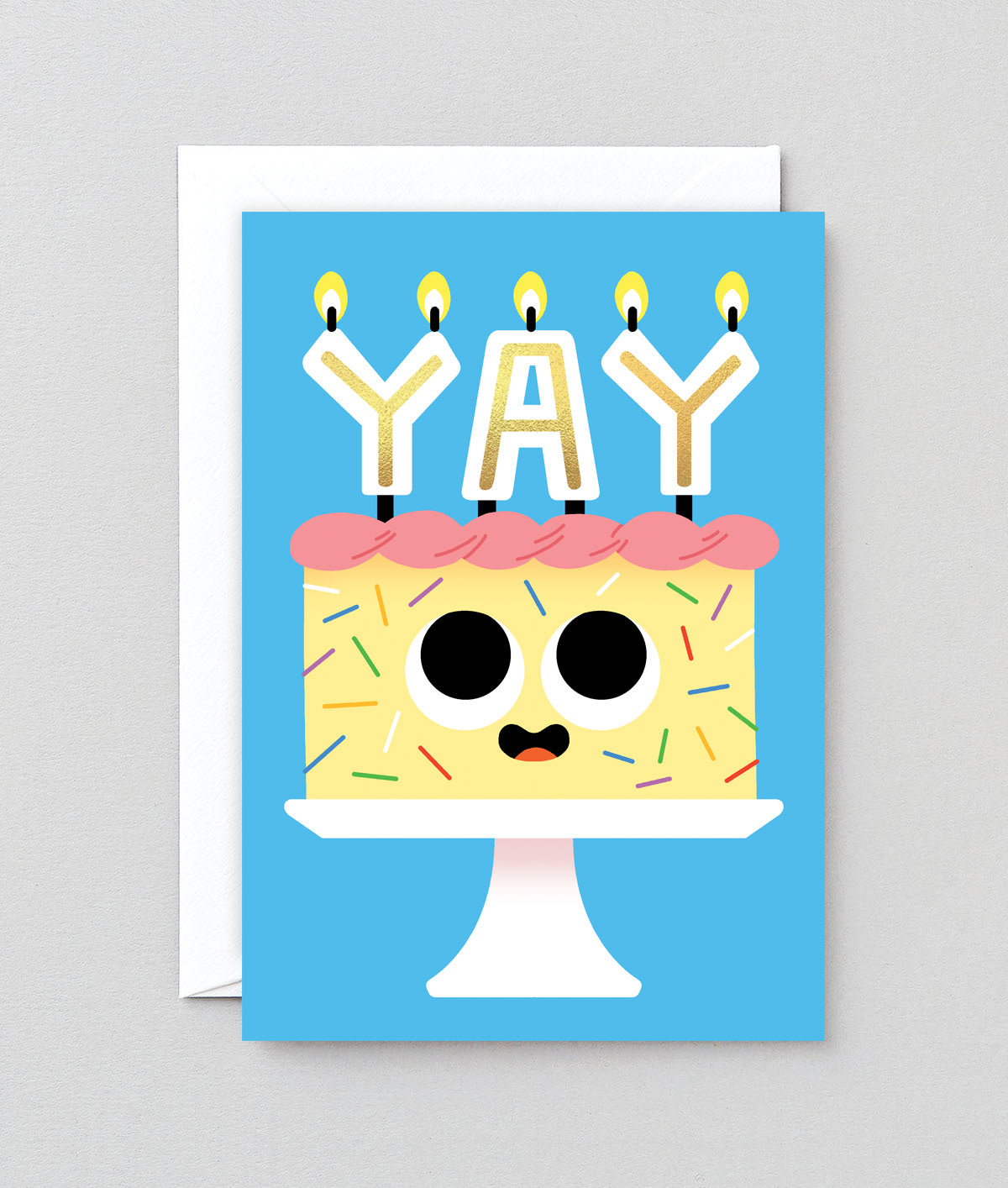 The happiest of cakes for the happiest of birthdays. This colourful birthday card is designed in a sweet and playful style.
