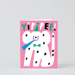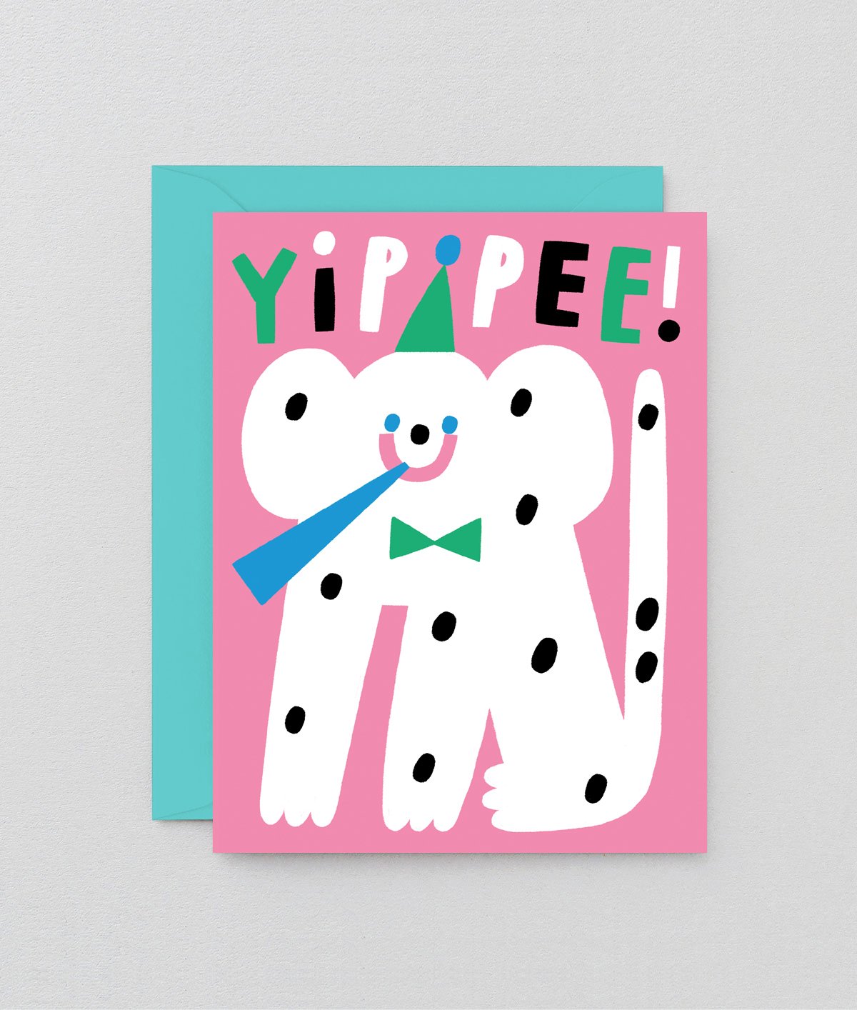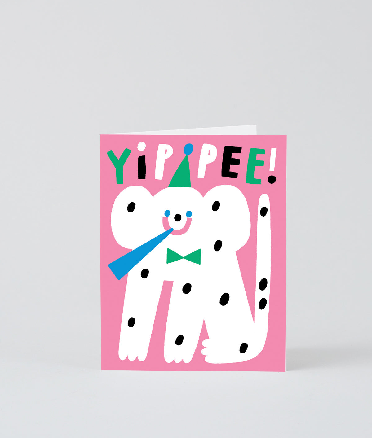 This freckled fella is all dressed up and ready to party. A children's greetings card design full of personality and colour.