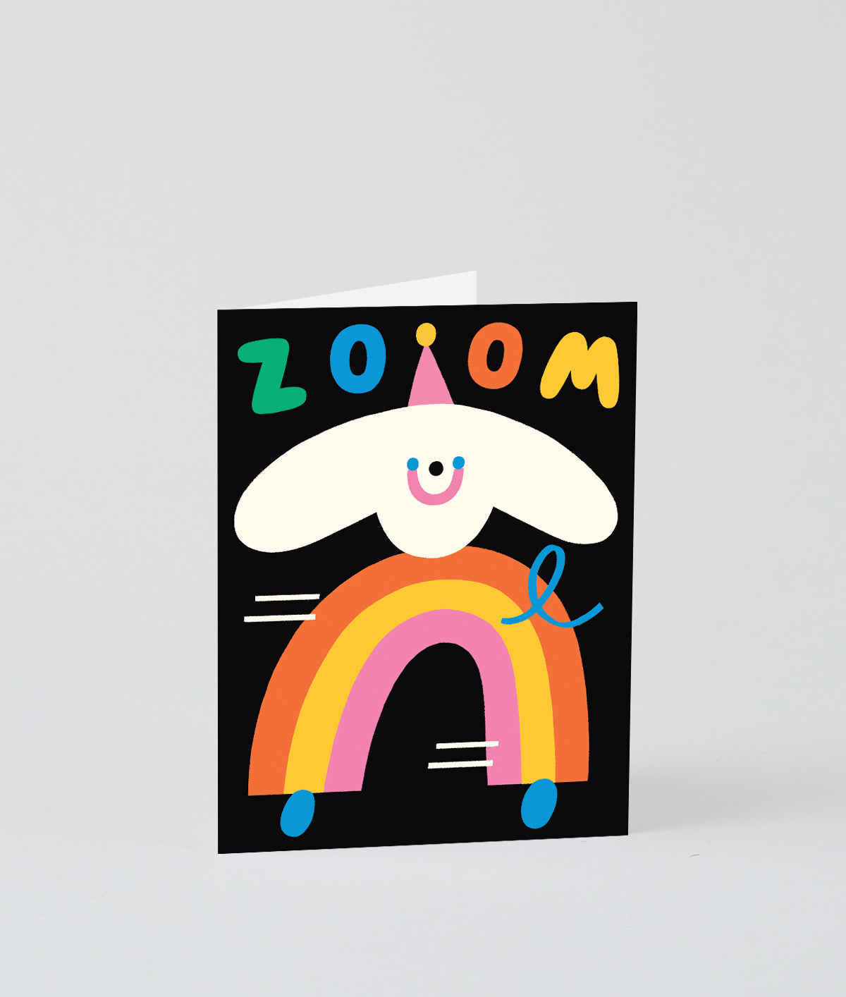 An energetic little fella on the move. Designed in beautiful rainbow colours, this kids' greeting card is full of fun and character.