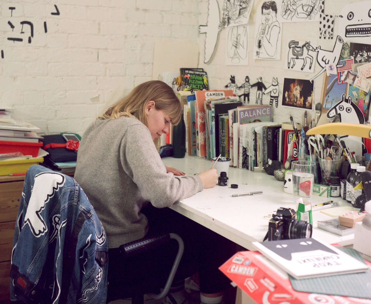 Alice describes her distinctive, mostly monochrome work as “cute but not too cutesy.” She creates her sweet cast of people and critters using black ink and brushes, and her original approach to character design bears the marks of her artistic heroes Dick Bruna and Tove Jansson.
